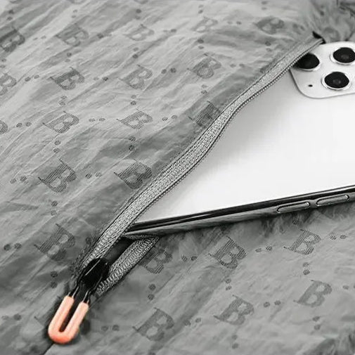 A lightweight, packable layer with a modern edge, this hooded windbreaker jacket features a subtle all-over pattern and roomy pockets, perfect for breezy summer nights or layering year-round.