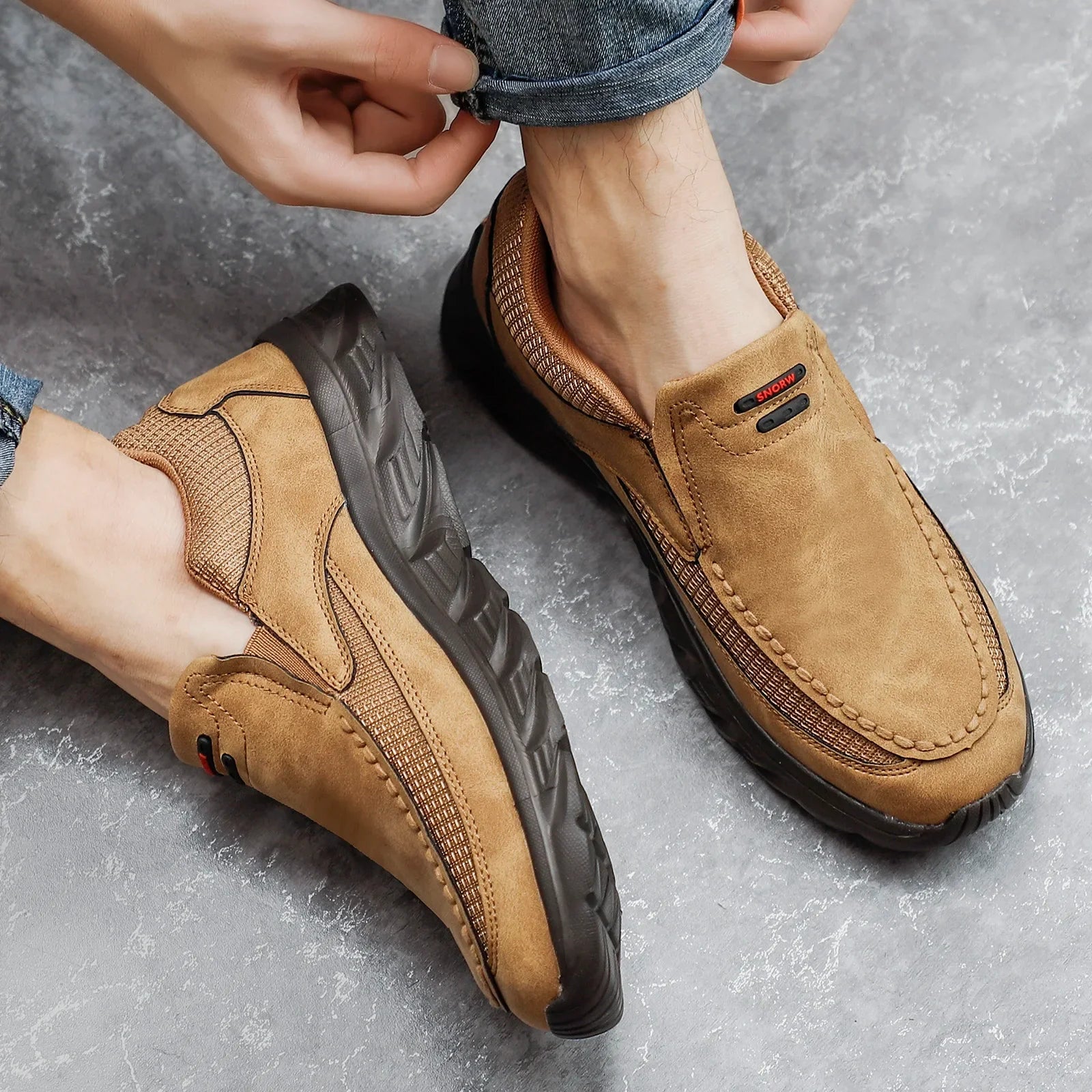 Durable leather with precision stitching and ventilated mesh delivers breathable comfort to these everyday slip-ons, finished with a cushioned insole and rugged rubber outsole, perfect for daily errands or weekend hikes.